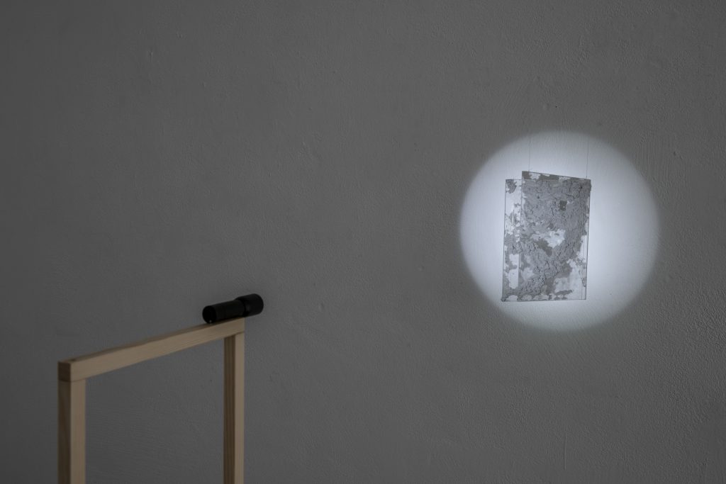 Acrylglas, Acrylfarbe, Modelliermasse, Betonestrich, Teer, Holz, Foto: Helge Mundt