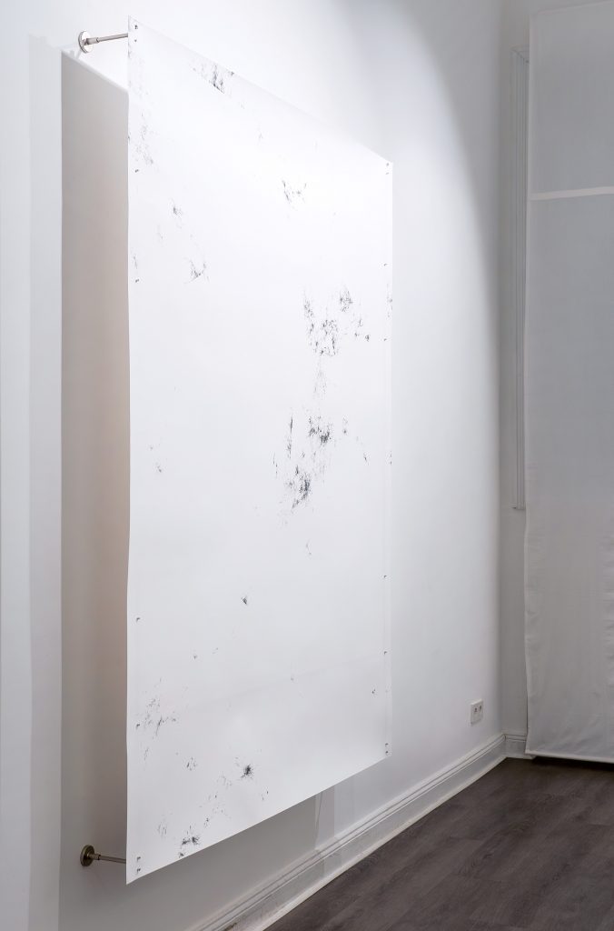 Zeichnung mit Pflaumenkern groß, 2025, Graphit auf Papier, 200 cm x 150 cm, Foto: Lorenz Wendt
